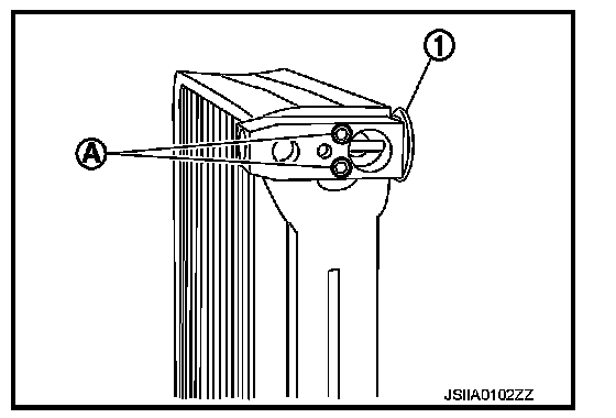3. Remove intake sensor (2) from evaporator, and then remove evaporator.