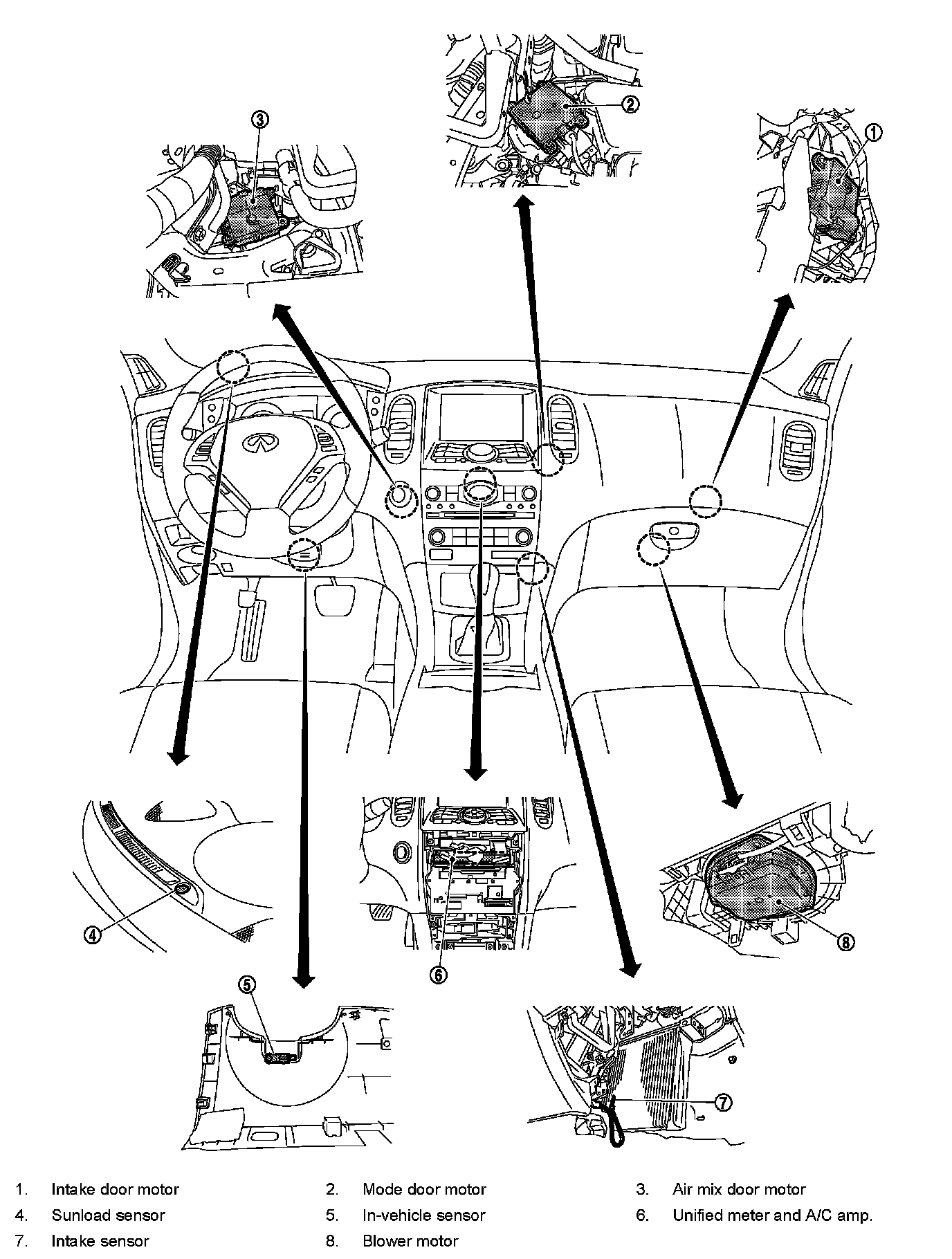 WITHOUT LEFT AND RIGHT VENTILATION TEMPERATURE SEPARATELY CONTROL SYSTEM : Component Part Location