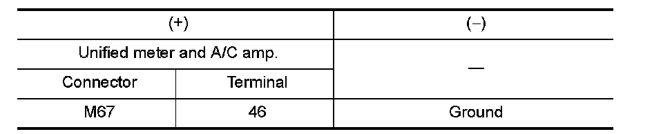 2. Check voltage between unified meter and A/C amp. harness connector and ground.