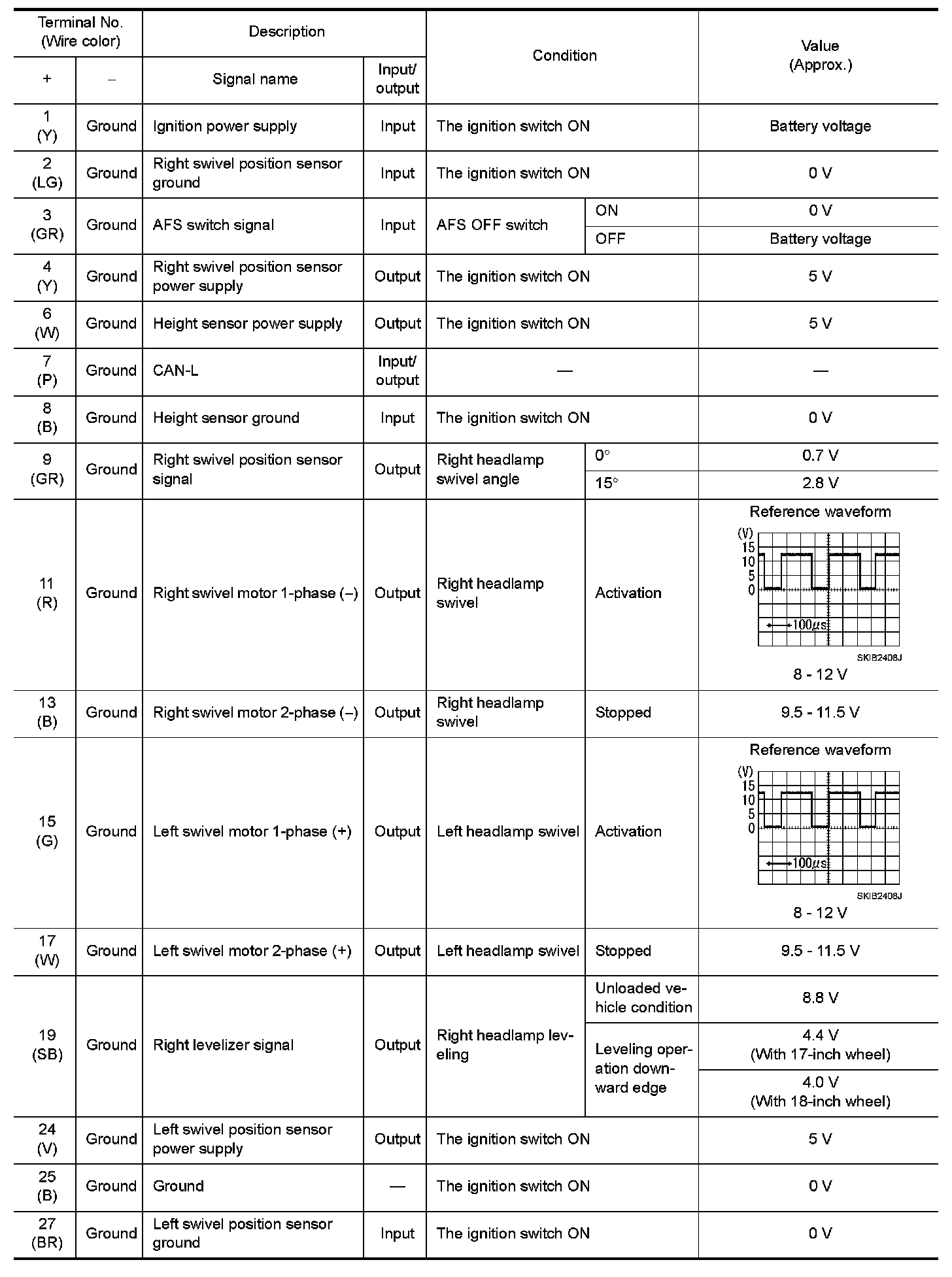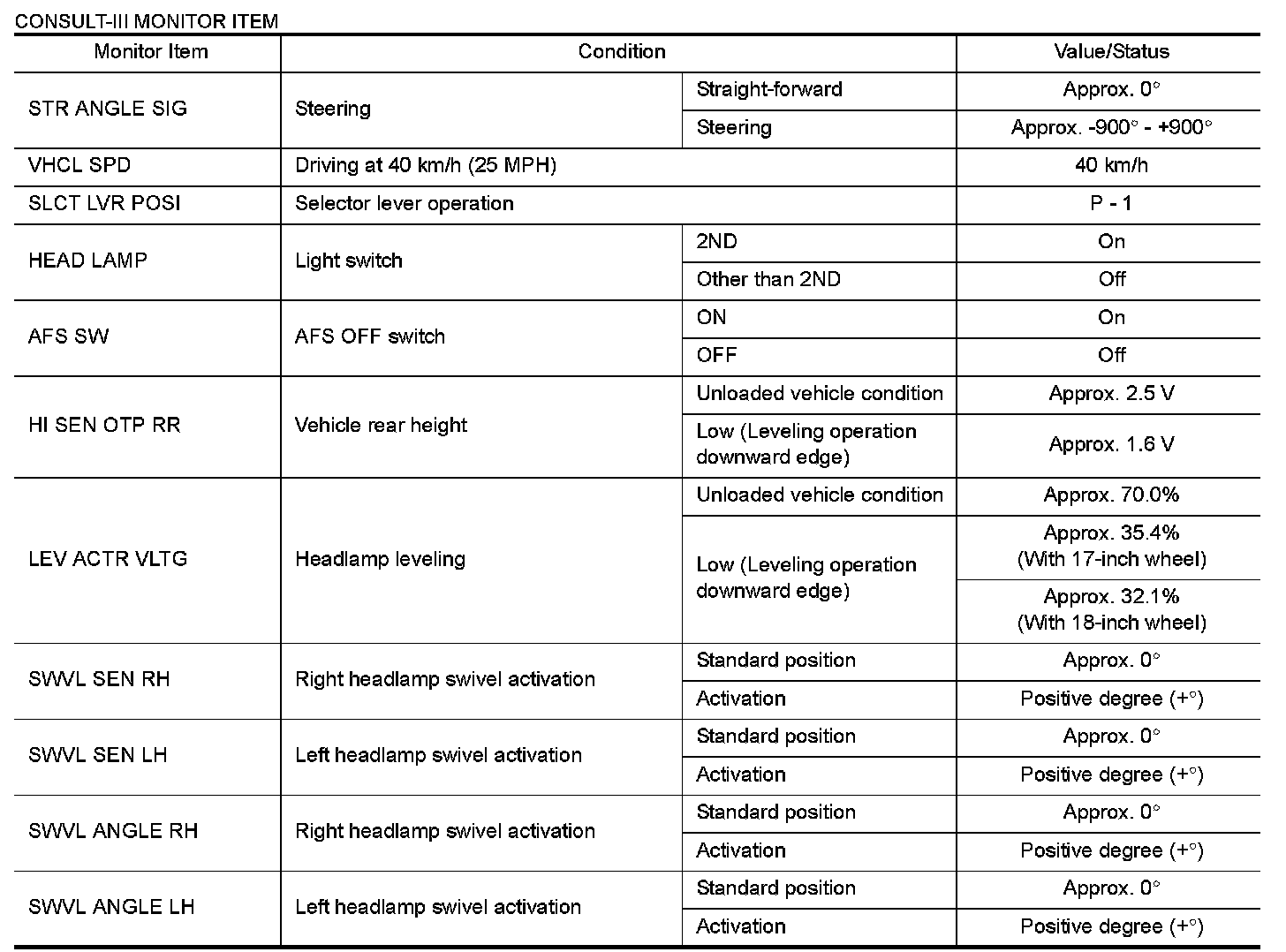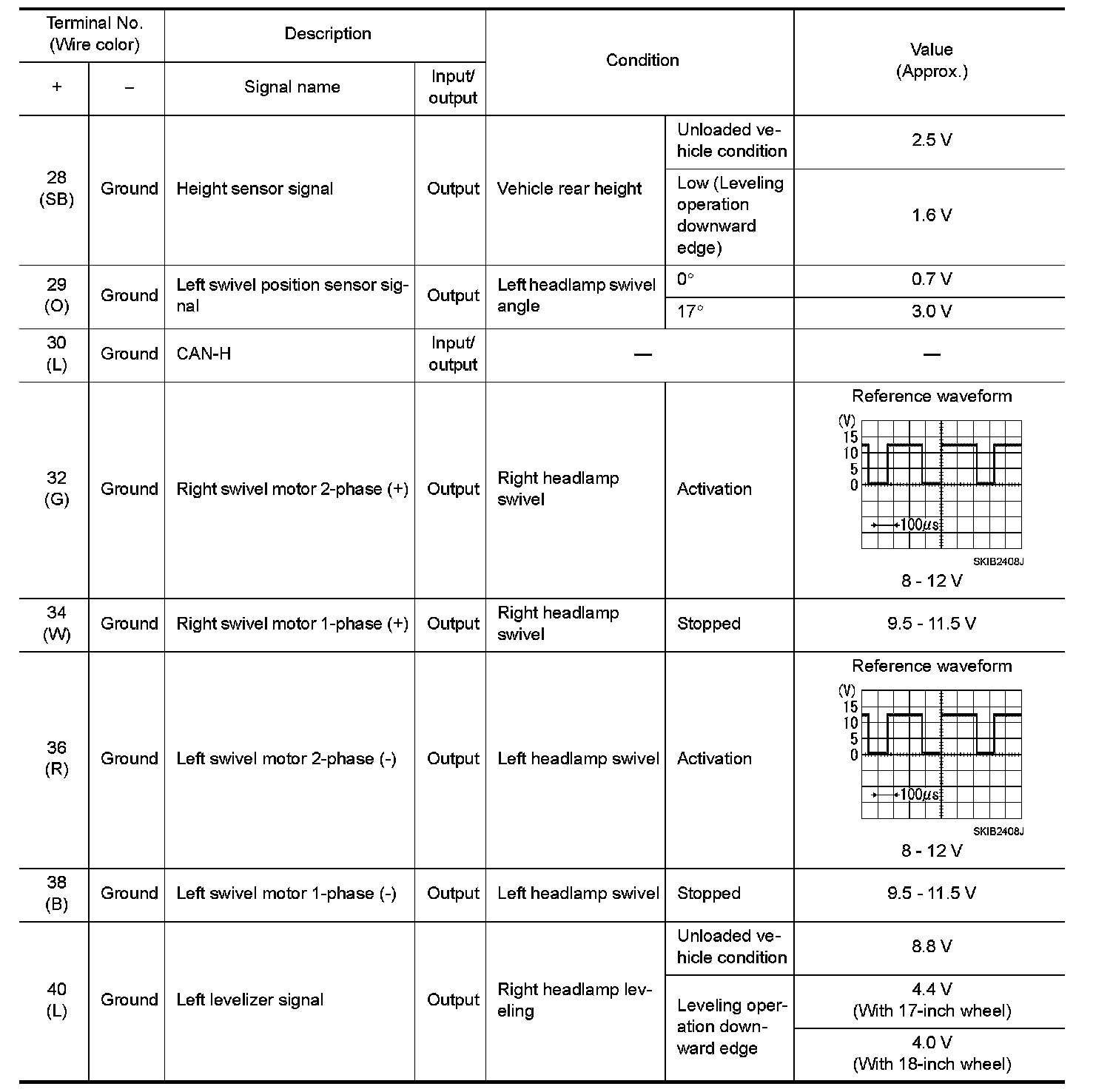 Pinout Values and Diagnostic Parameters