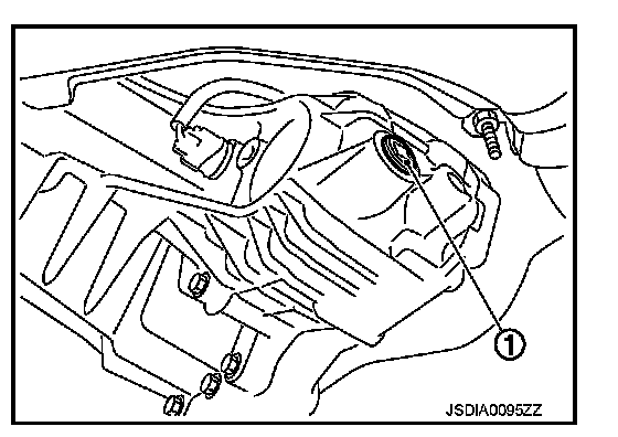 2. Stop the engine, and remove the drain plug (1) to drain the transfer fluid.