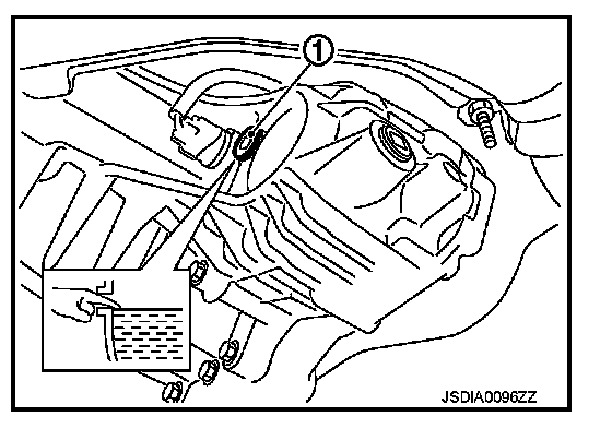 1. Remove filler plug (1) and gasket. Then check that fluid is filled up from mounting hole for the filler plug.