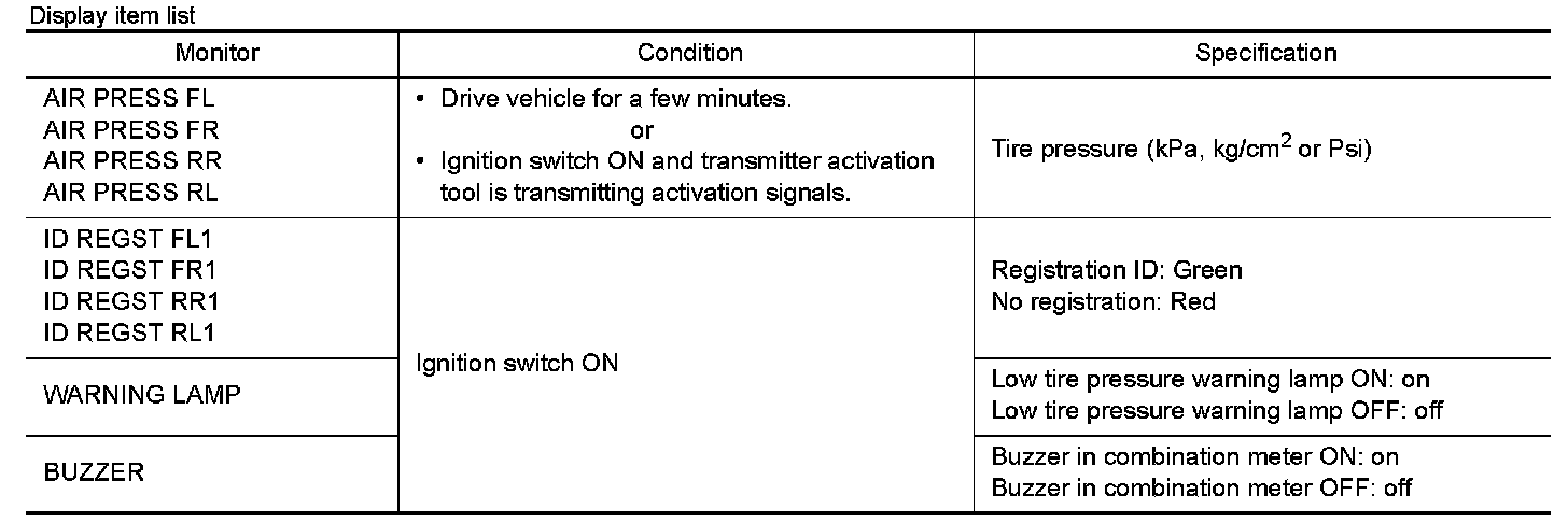 AIR PRESSURE MONITOR : CONSULT-III Function (BCM - AIR PRESSURE MONITOR)
