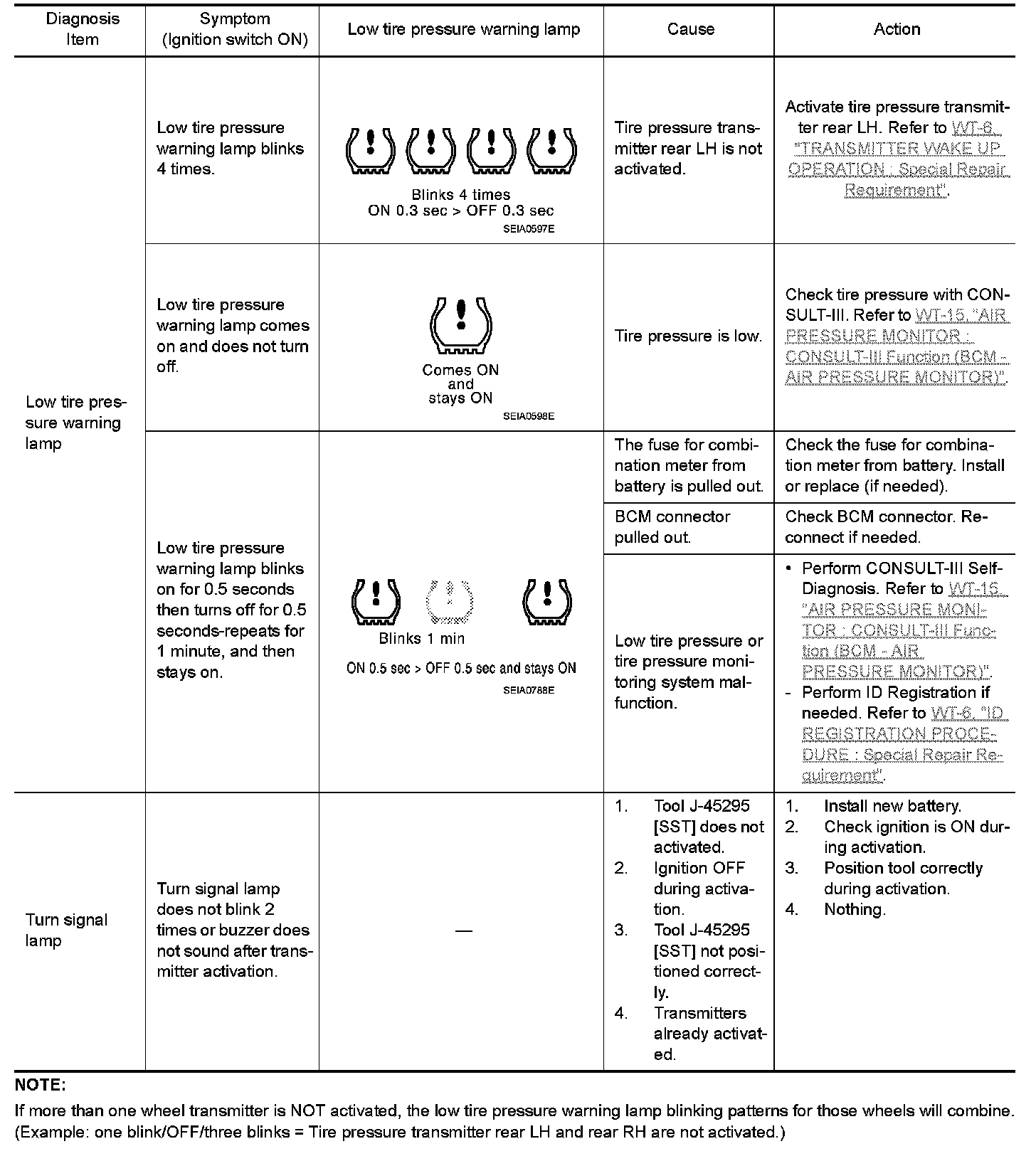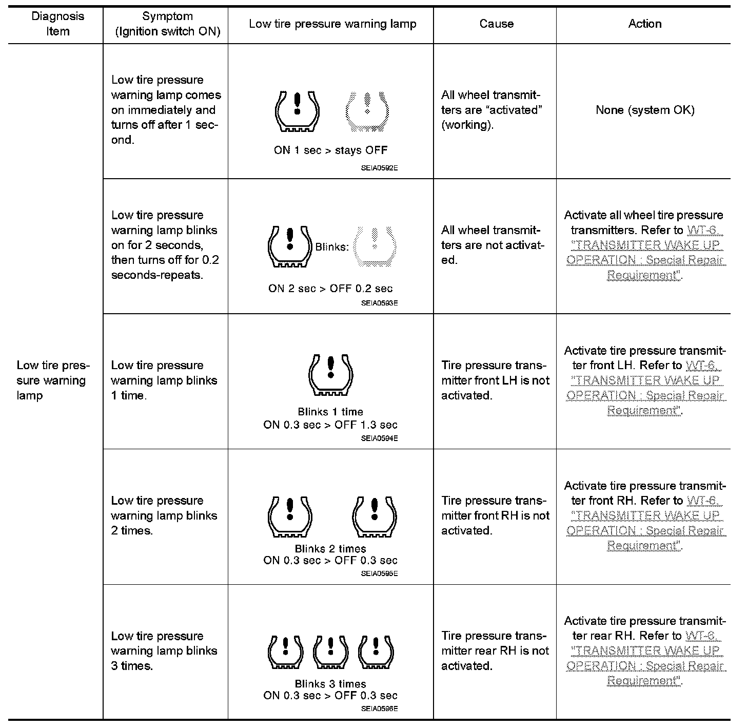 LOW TIRE PRESSURE WARNING LAMP SYMPTOM CHART