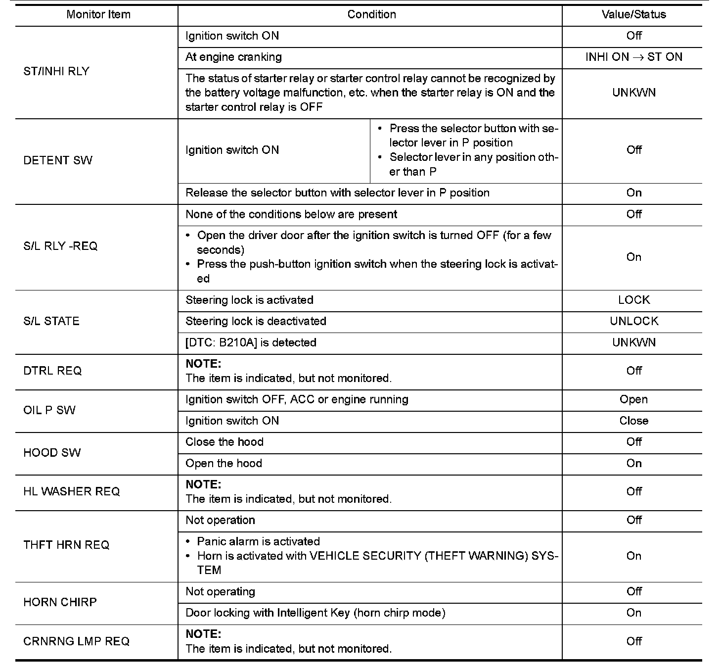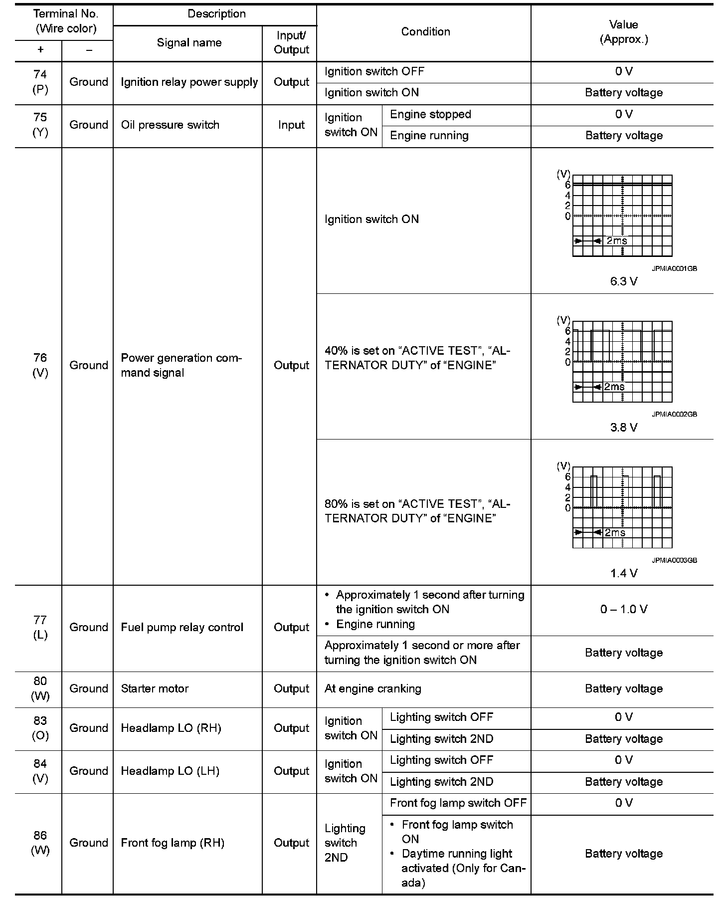 Pinout Values and Diagnostic Parameters
