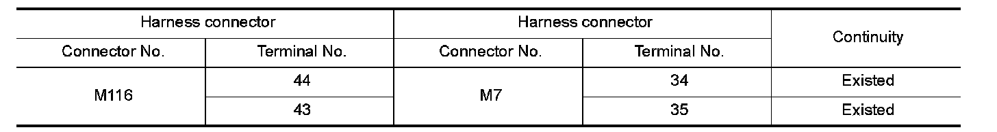 NO - Repair the main line between the harness connectors M116 and M7.