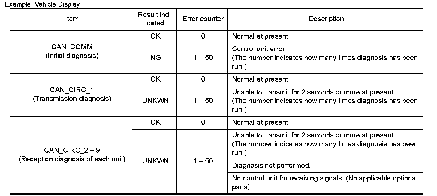 For some models, CAN communication diagnosis result is received from the vehicle monitor.