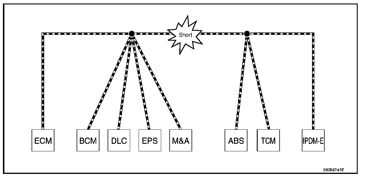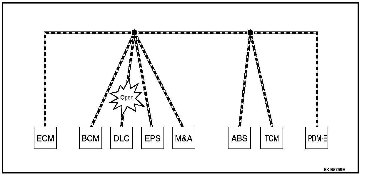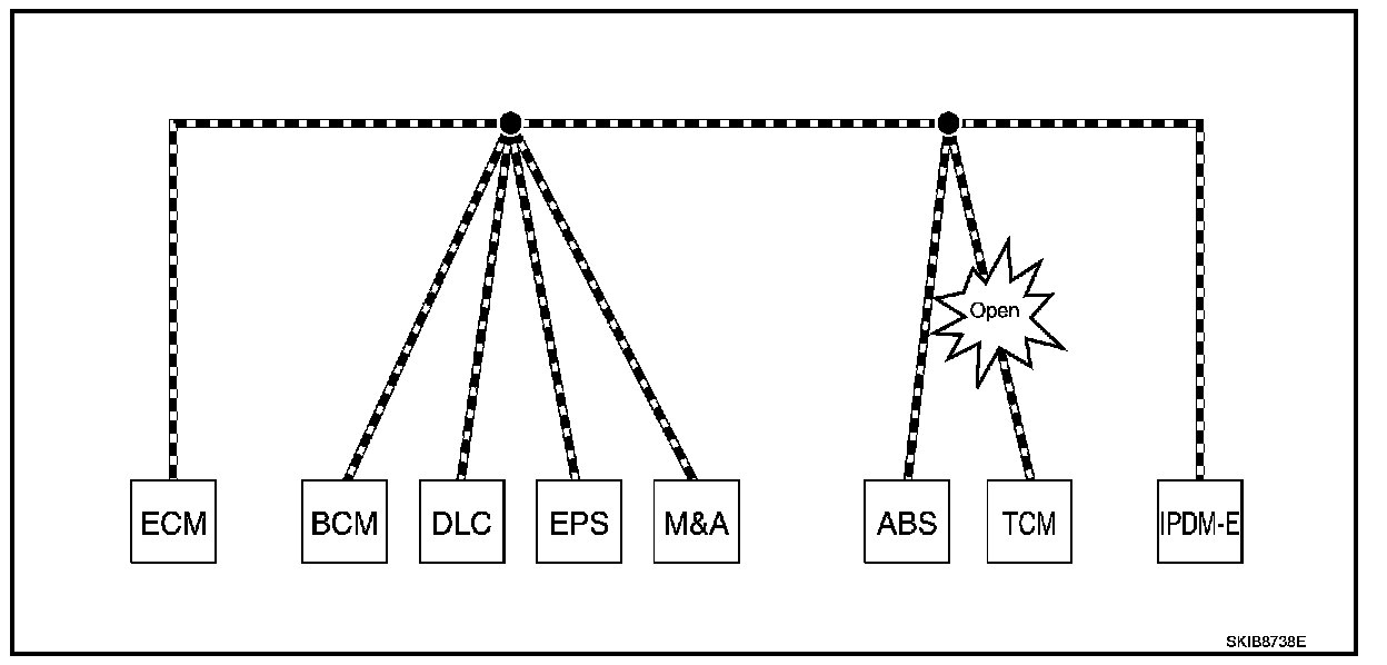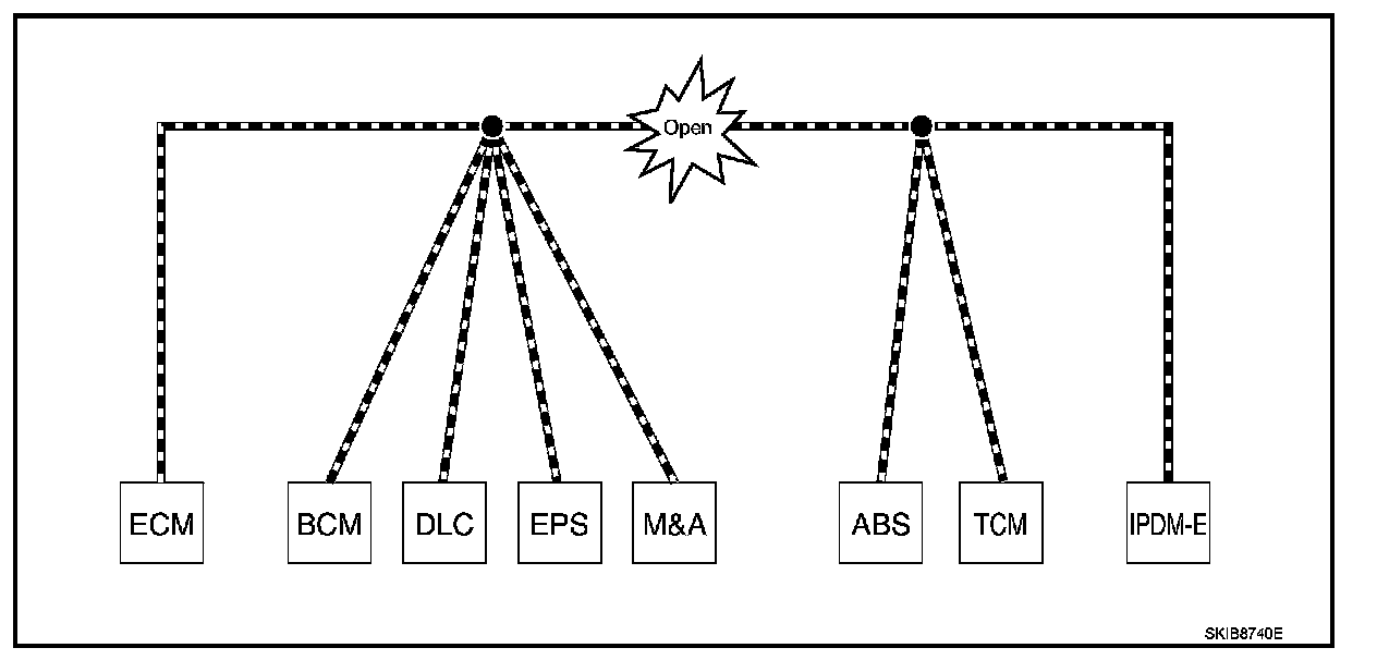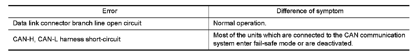 - When data link connector branch line is open, transmission and reception of CAN communication signals are not affected. Therefore, no symptoms occur. However, be sure to repair malfunctioning circuit.