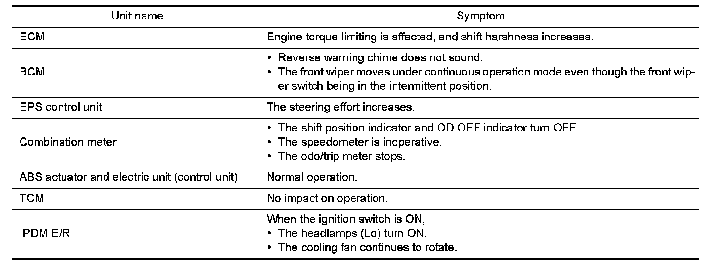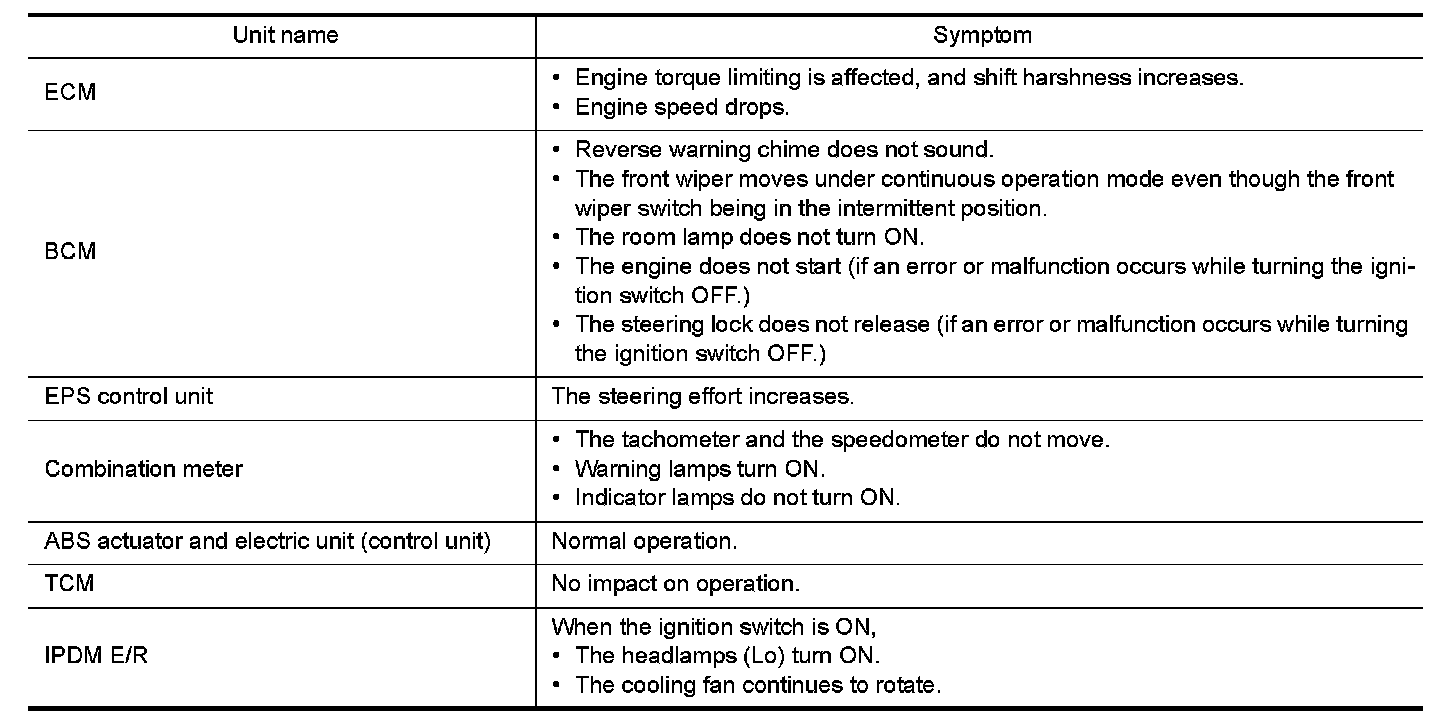- Each vehicle differs in symptom of each unit under fail-safe mode and CAN communication line wiring.
