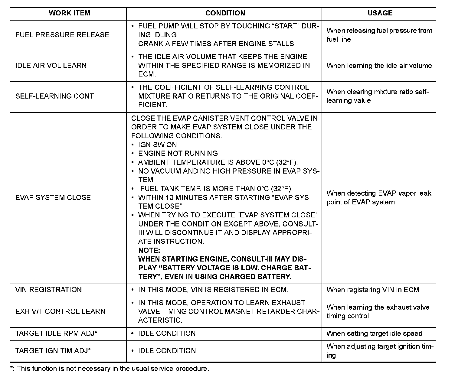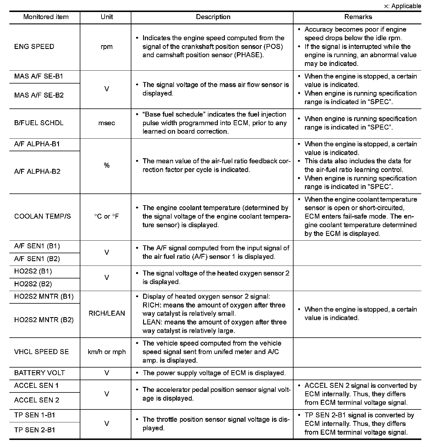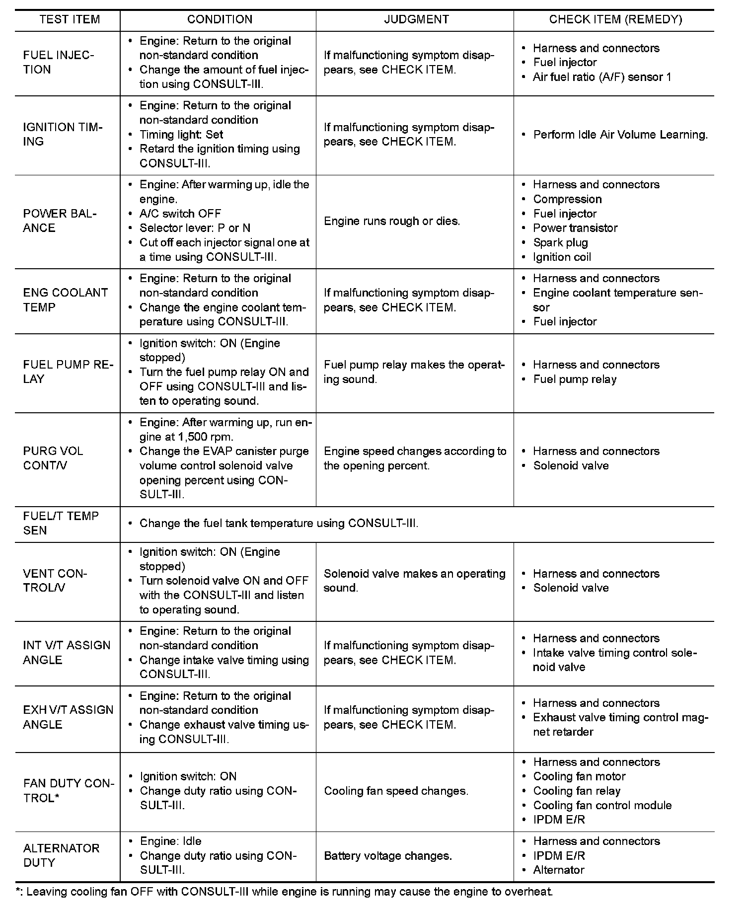 Regarding items of DTC and 1st trip DTC, refer to Testing and Inspection.