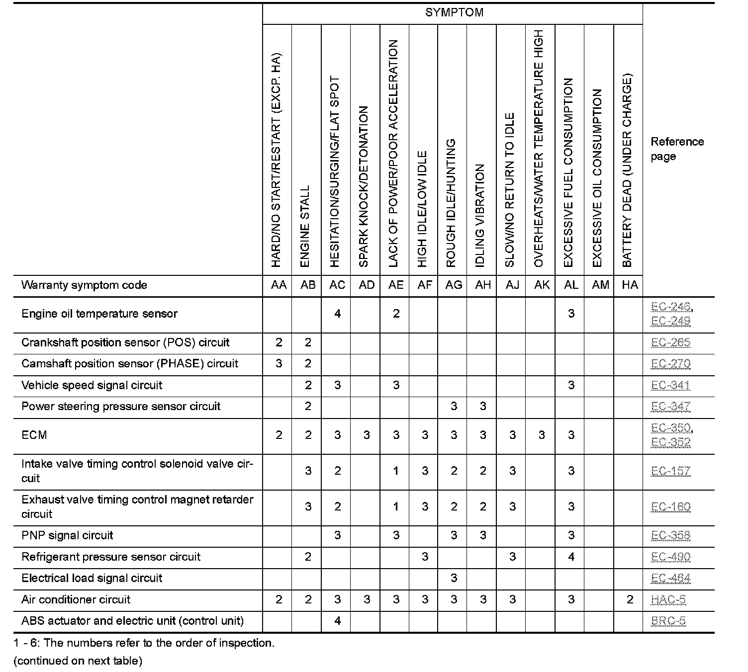 Symptom Table - Basic Engine Control System (Part 2):