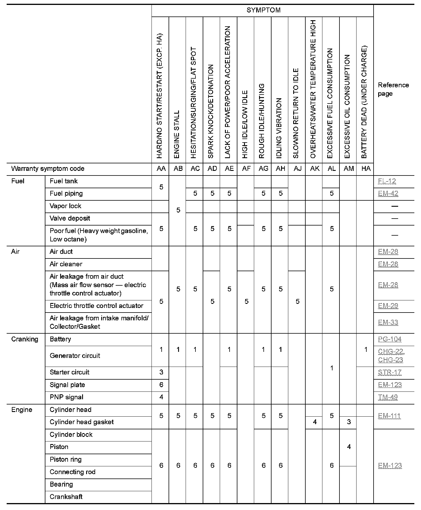 ENGINE CONTROL SYSTEM SYMPTOMS