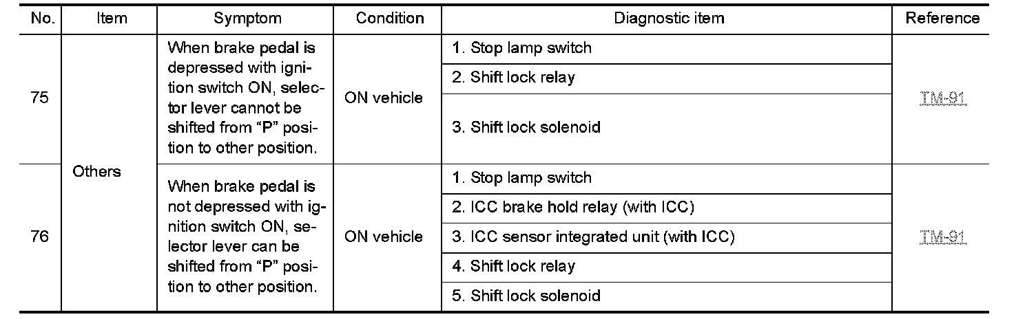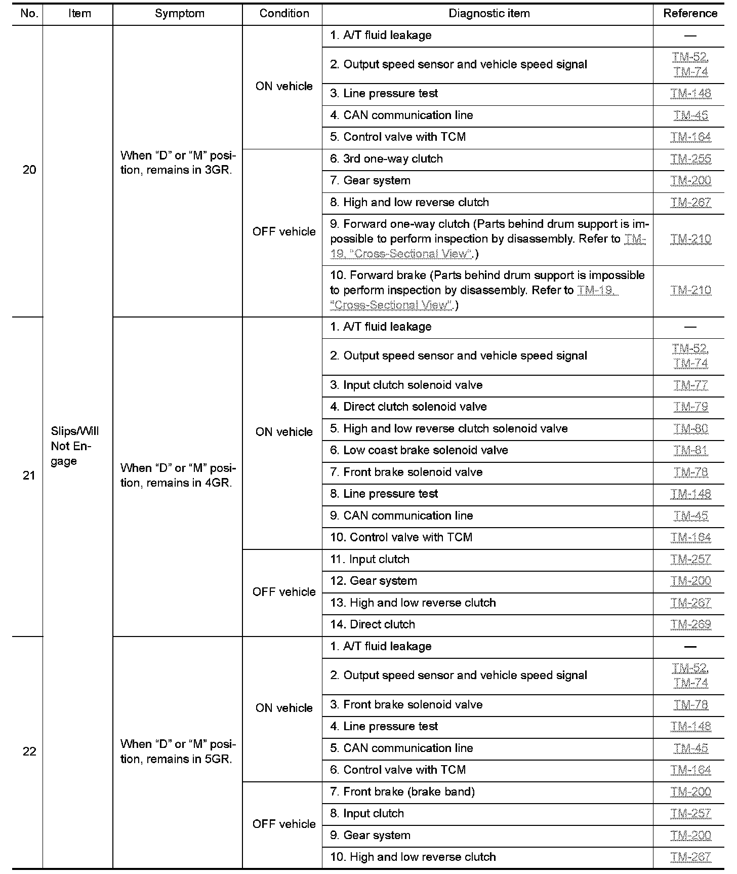 SYSTEM SYMPTOMSymptom Table The diagnostics item numbers show the sequence for inspection. Inspect in order from item 1.