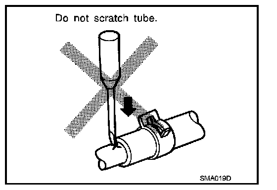 - To prevent damage to rubber hose, do not pry off rubber hose with tapered tool or screwdriver.