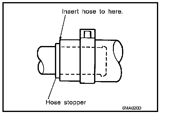 - To reinstall the rubber hose securely, make sure that hose insertion length and orientation is correct. (If tube is equipped with hose stopper, insert rubber hose into tube until it butts up against hose stopper.)
