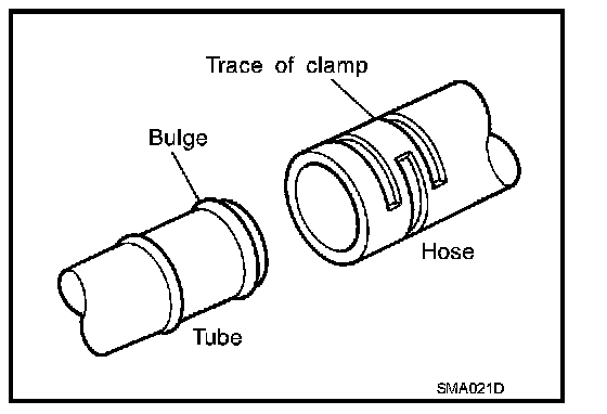 - If old rubber hose is re-used, install hose clamp in its original position (at the indentation where the old clamp was). If there is a trace of tube bulging left on the old rubber hose, align rubber hose at that position.