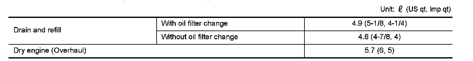 ENGINE OIL CAPACITY (APPROXIMATELY)