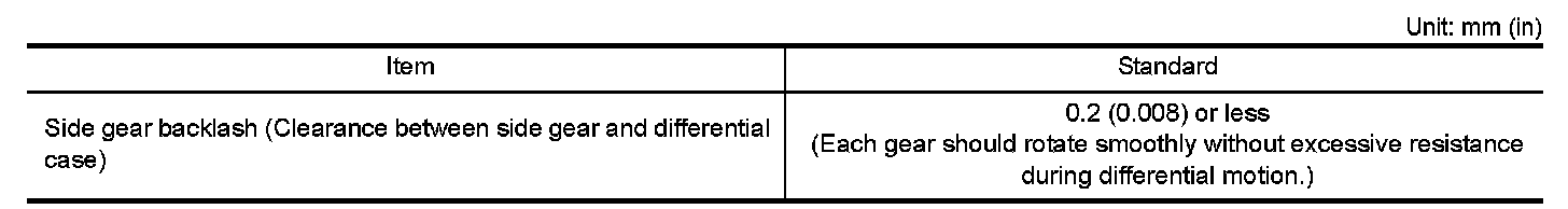 Differential Side Gear Clearance
