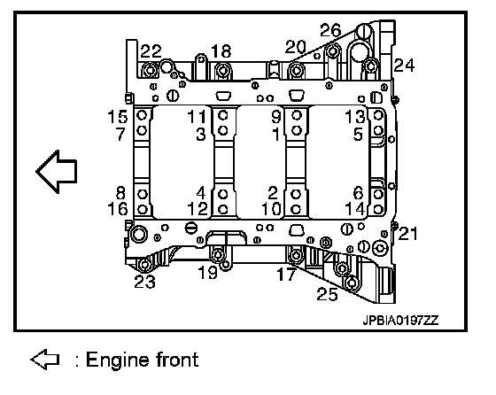 Tighten lower cylinder block bolts (No. 17 to 26) in numerical order as shown in the figure.
