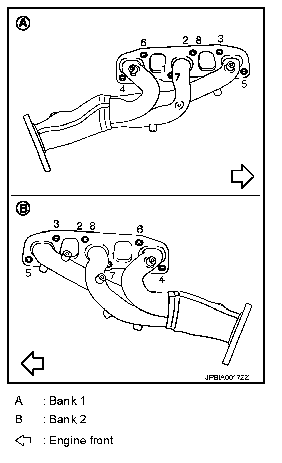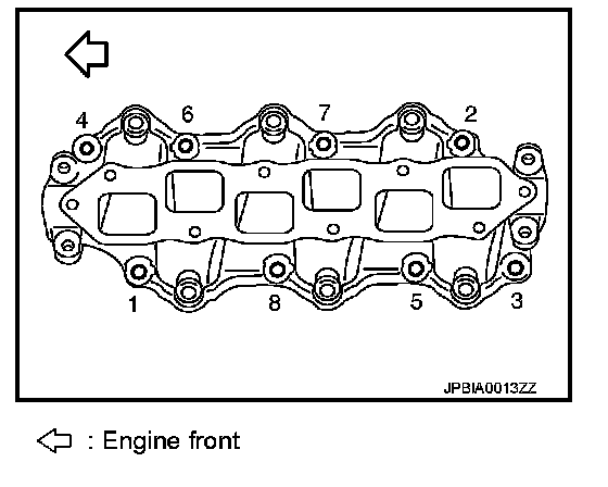 - Install exhaust manifold and tighten mounting nuts in numerical order as shown in the figure.