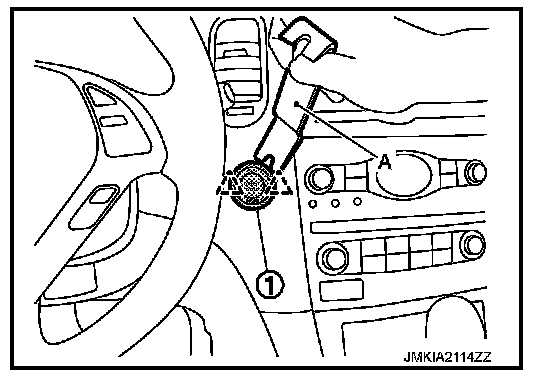 Remove the push-button ignition switch fixing pawl using a remover tool (A), and then remove push-button ignition switch (1).