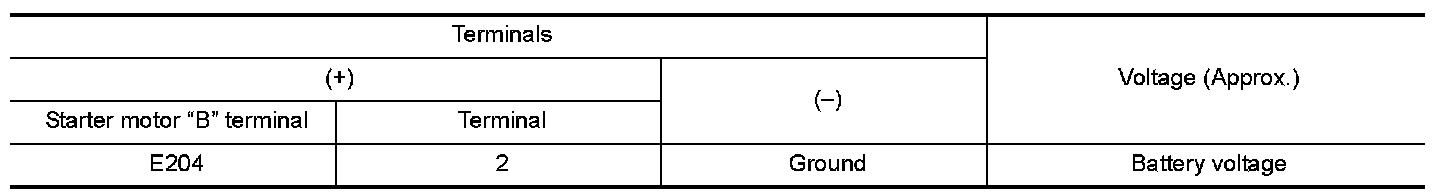 2. Check voltage between starter motor case and battery negative terminal.