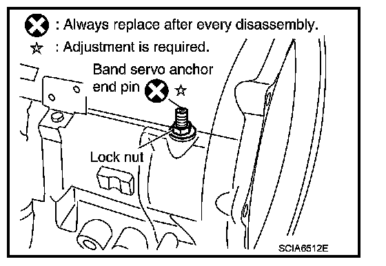44. Install band servo anchor end pin and lock nut to transmission case.