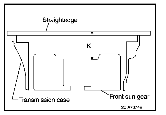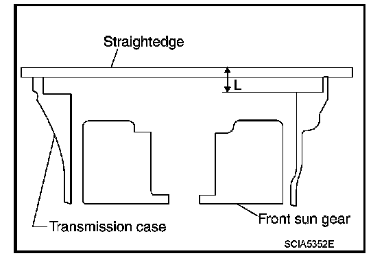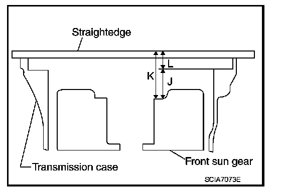 "J" : Distance between oil pump fitting surface of transmission case and needle bearing mating surface of front sun gear.
