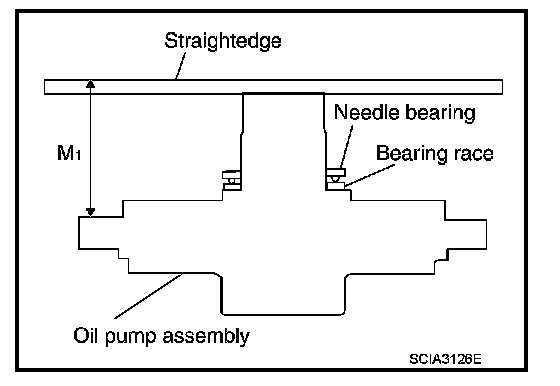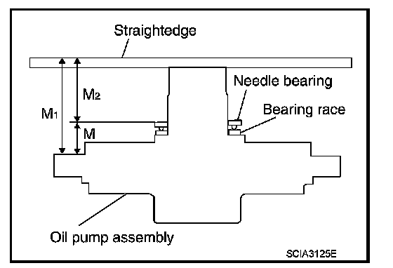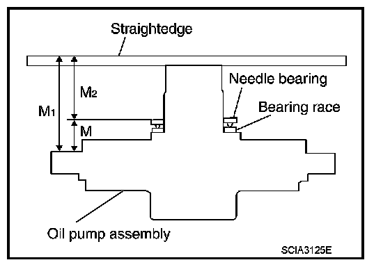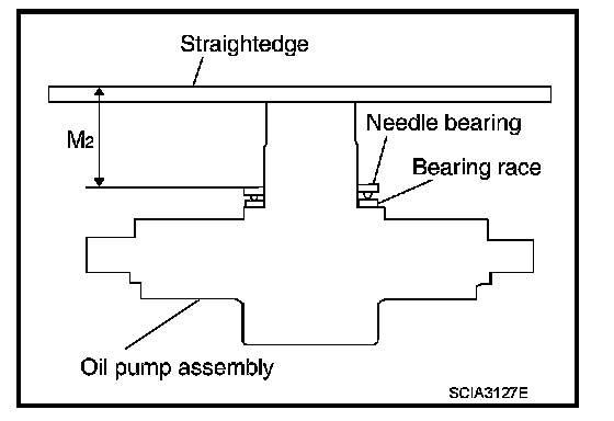 "M" : Distance between transmission case fitting surface of oil pump and needle bearing on oil pump.