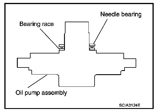 i. Place bearing race and needle bearing on oil pump assembly.