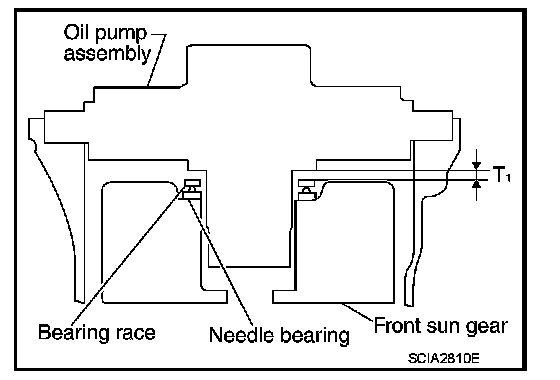 - Measure clearance between front sun gear and bearing race for oil pump cover.