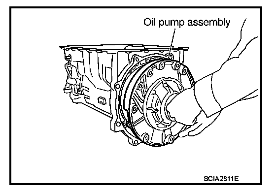 53. Install oil pump assembly to transmission case.