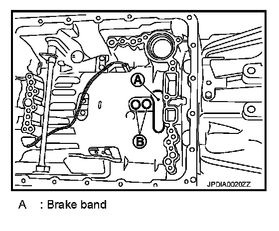 58. Make sure that brake band (A) does not close input speed sensor holes (B).