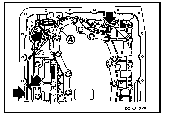 60. Install A/T assembly connector (A) to control valve with TCM.