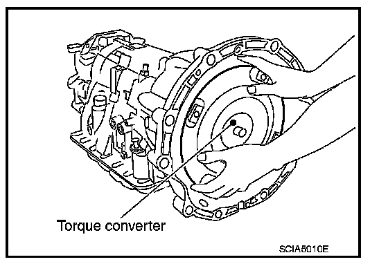 2. Remove torque converter by holding it firmly and turning while pulling straight out.