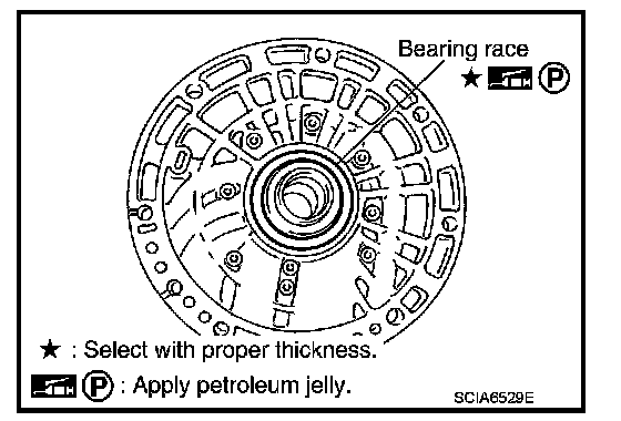 - Make sure that bearing race is installed to the oil pump assembly edge surface.