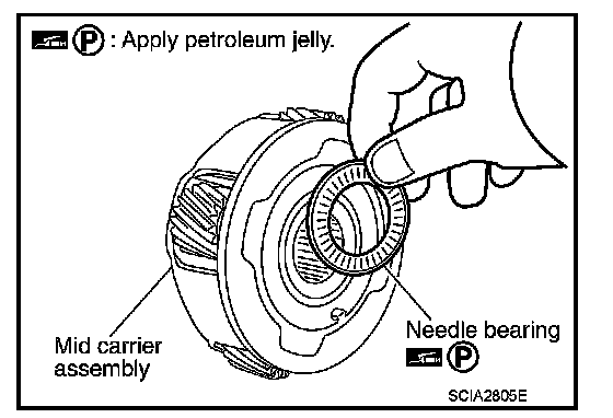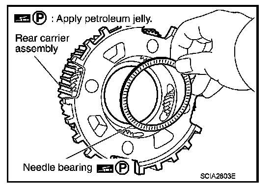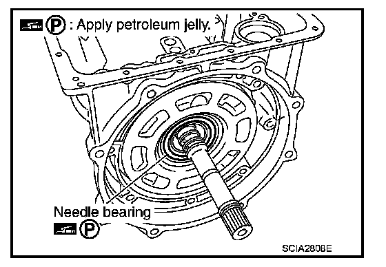 Make sure that needle bearing is installed to the high and low reverse clutch assembly edge surface.