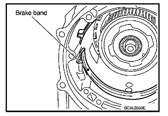 15. Remove brake band from transmission case.
