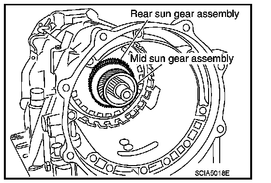 22. Remove mid sun gear assembly, rear sun gear assembly and high and low reverse clutch hub as a unit.