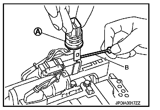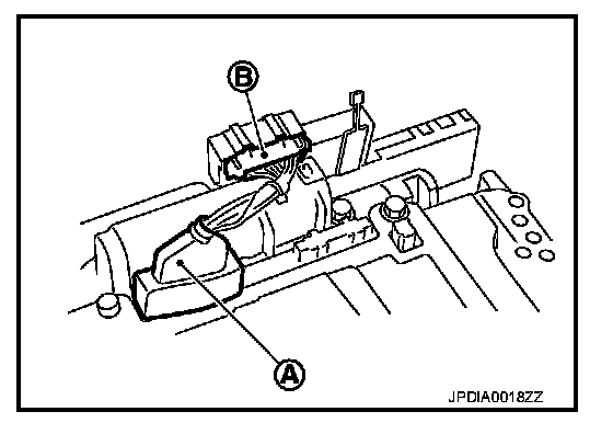 42. Disconnect TCM connector (A) and transmission range switch connector (B).