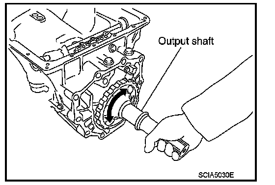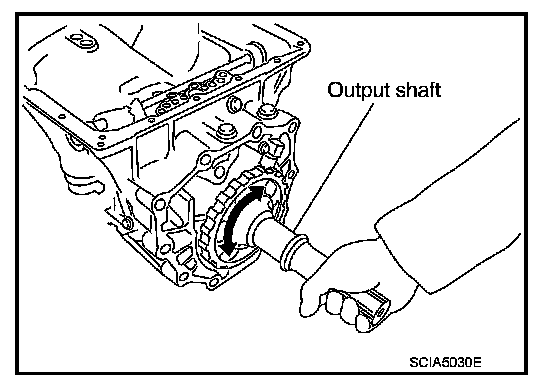v. Remove output shaft from transmission case by rotating left/right.