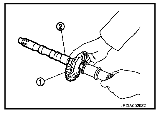vii. Remove parking gear (1) from output shaft (2).
