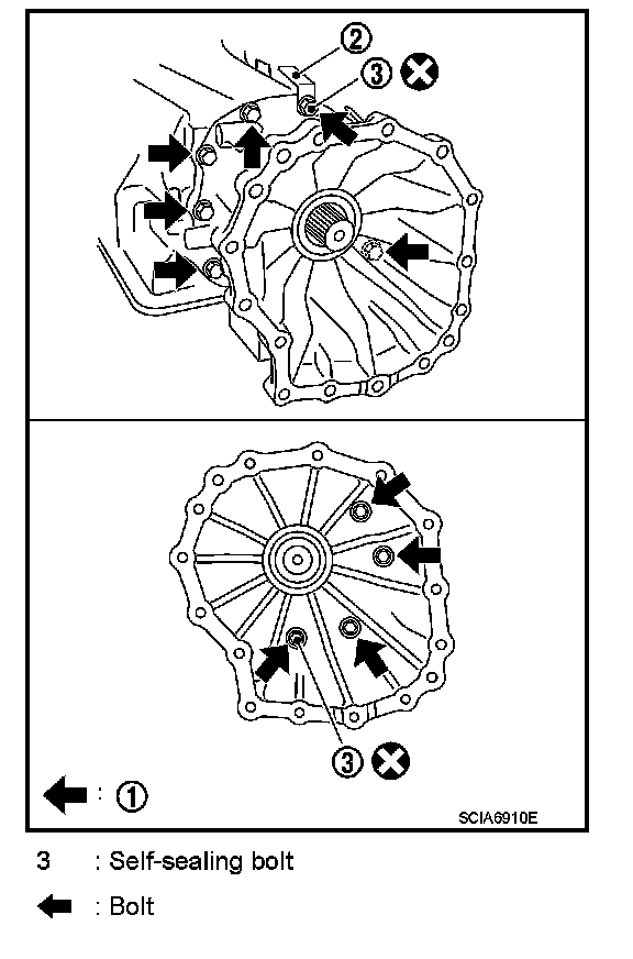 a. 2WD i. Remove tightening bolts for rear extension assembly and transmission case.