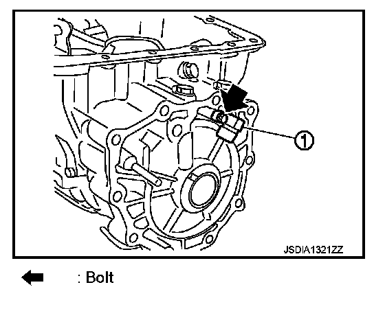 i. Remove tightening bolts (1) for adapter case assembly and transmission case. [With bracket (2).]