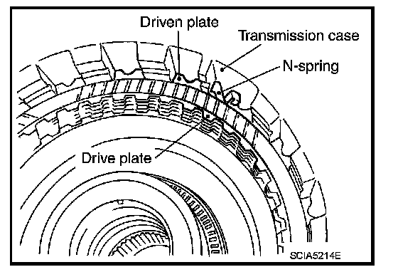 49. Remove reverse brake drive plates, driven plates, dish plates and retaining plate transmission case.