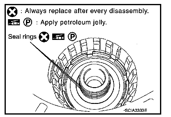 55. Remove D-rings from reverse brake piston.