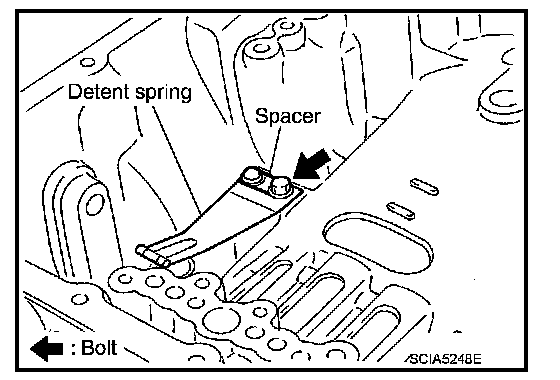 62. Remove detent spring and spacer from transmission case.