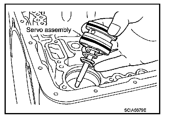 64. Remove servo assembly (with return spring) from transmission case.