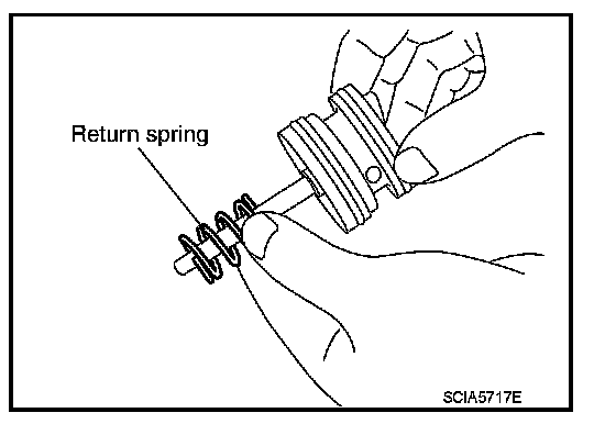 51. Remove spring retainer and return spring from transmission case.