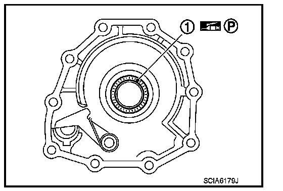 67. Remove needle bearing (1) from rear extension (2WD) or adapter case (AWD).